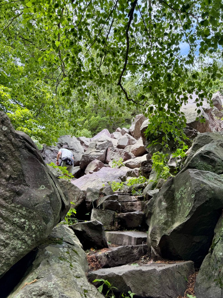 We took on a few hikes during our stay—Devil’s Lake is famous for its rocky trails and dramatic views. One trail in particular was listed as “short,” but the part it didn’t mention? That it was practically vertical.